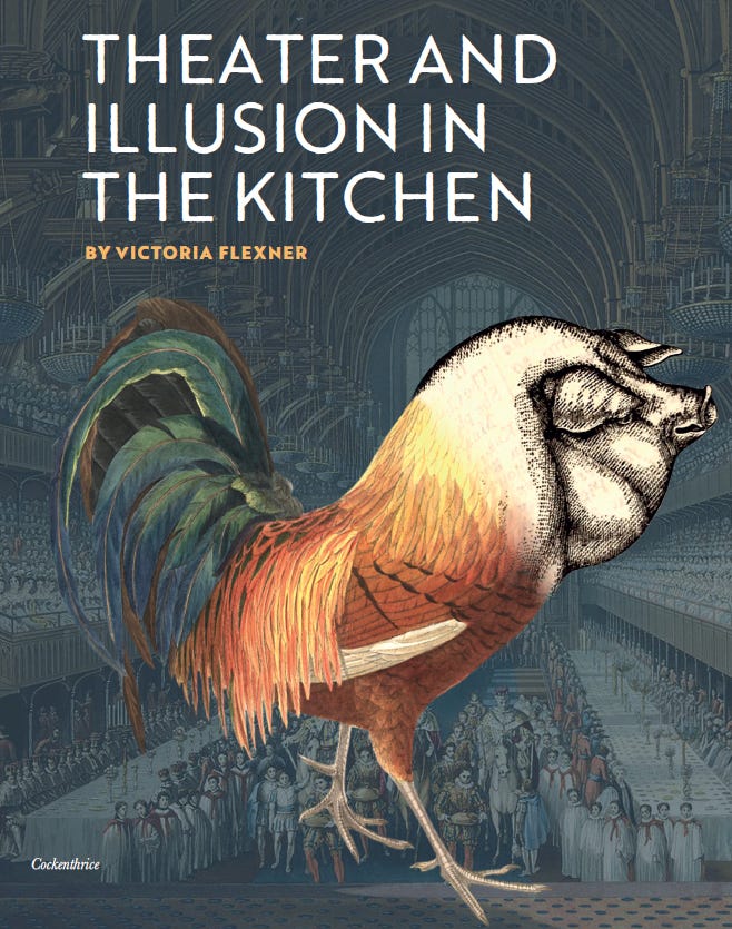 I have been enthralled by a piece from Victoria Flexner, where she provides fascinating details of the theatrical illusions regarding meat that the medieval European elite indulged in. Behold, the cockenthrice. And no, it is not made up; according to Flexner, recipes for cockenthrice appear in the fourteenth and fifteenth-century cookery books.